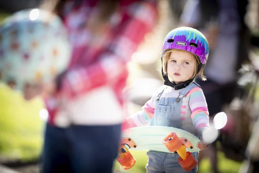 Thick straps hold the helmet in place on the toddler’s head, and the meeting point just below the chin comes with an updated Fidlock magnetic buckle that prevents pinching.